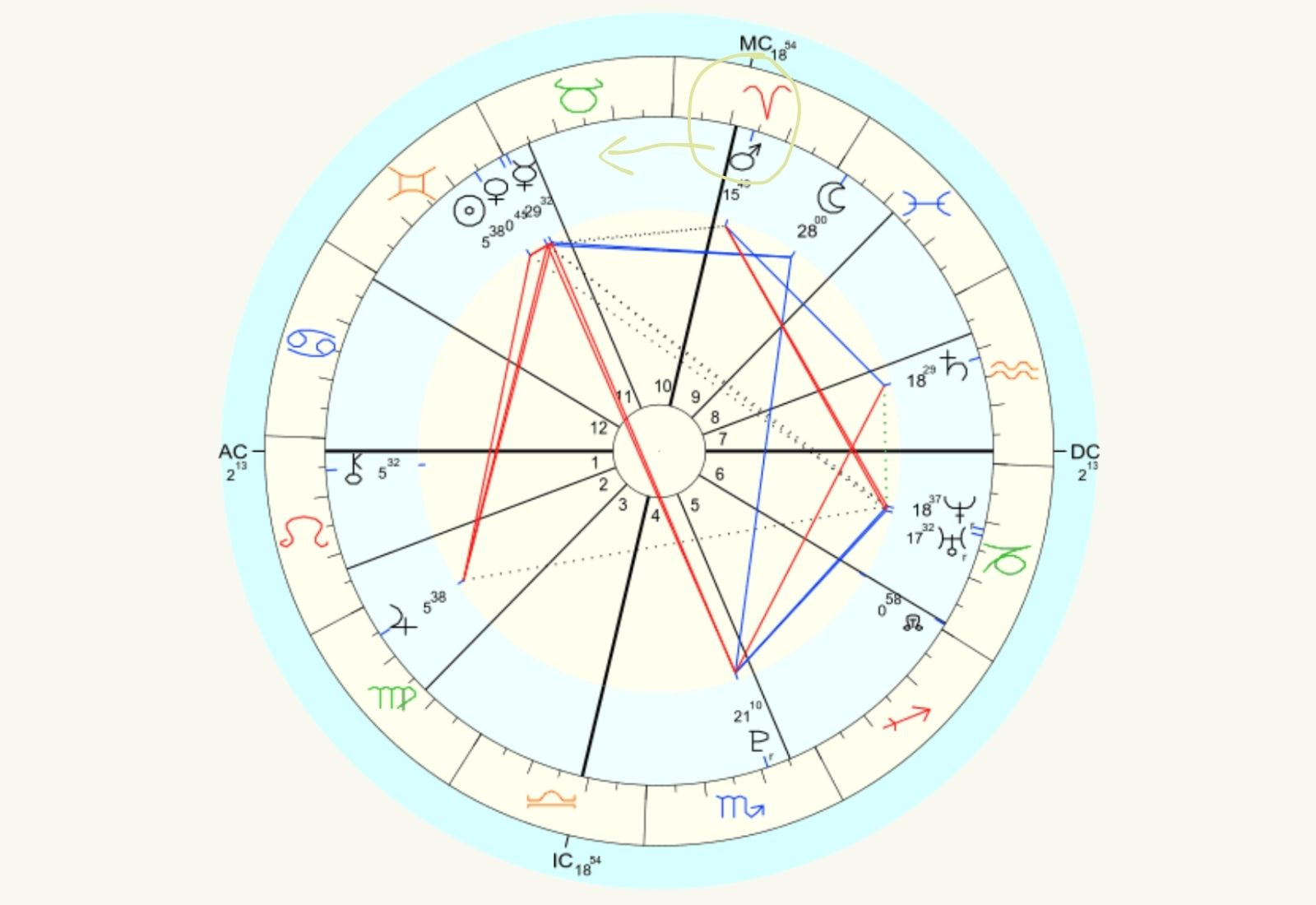 However, I also have Aries in my 9th house, and I do have two Aries placements - I have my Mars in Aries conjunct my MC in Aries.